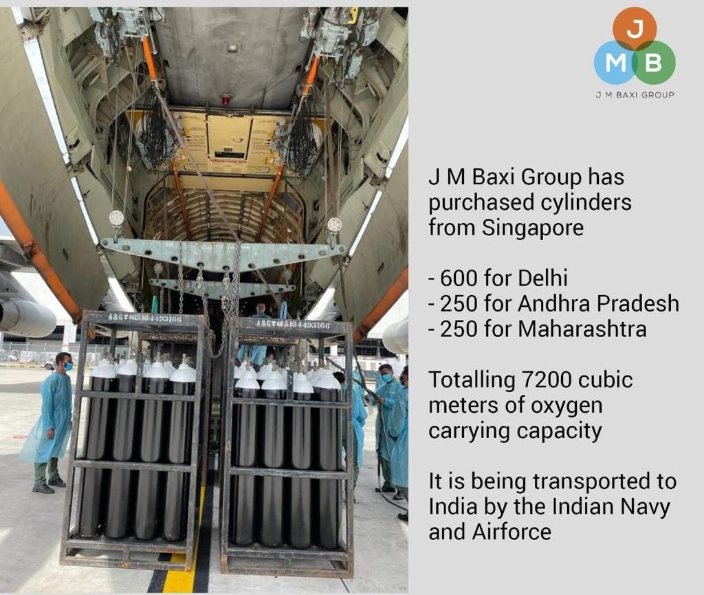Indian corporates are leading from the front in arranging oxygen for people suffering from COVID-19. J M Baxi has purchased cylinders from Singapore. 600 for