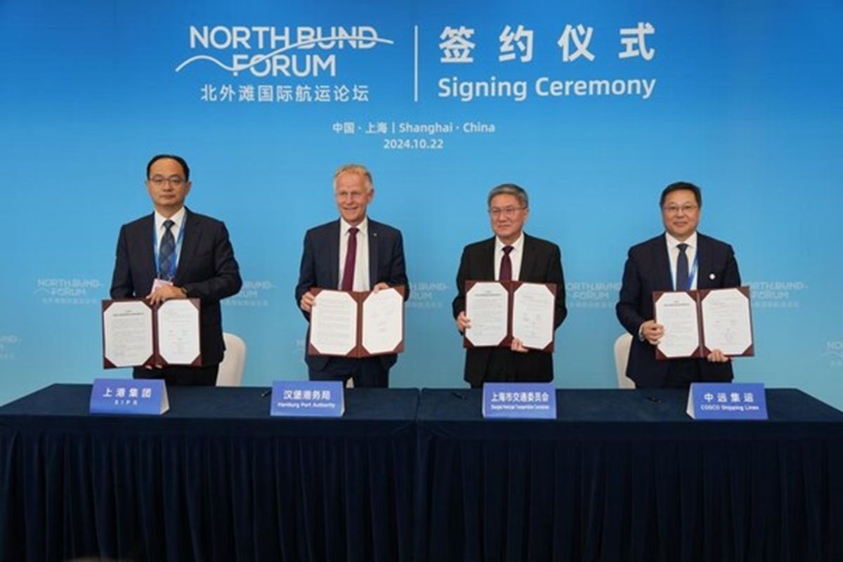 China’s Shanghai Port and Germany’s Port of Hamburg pledged to collaborate on the construction of a green shipping corridor at the 2024 North Bund Forum,